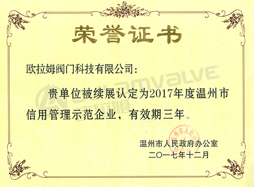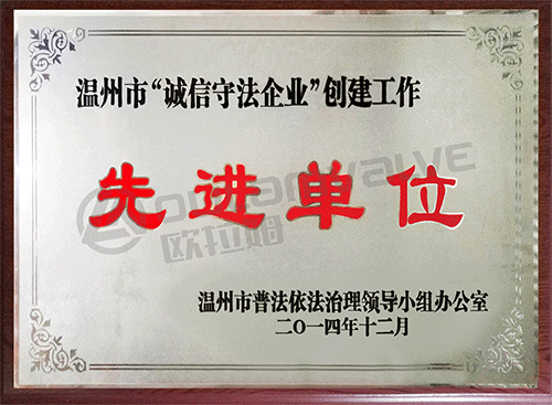 溫州市“誠信守法企業(yè)”創(chuàng)建工作先進單位