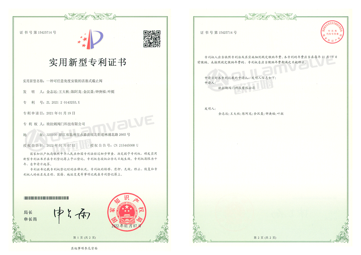 本實用新型公開了一種可任意角度安裝的活塞式截止閥,包括閥體,閥體內設置有閥座、閥瓣,閥體的頂端上通過螺栓固定安裝有閥蓋,螺栓上螺紋套有螺母,閥蓋的上方焊接有填料函,填料函上螺栓固定有填料壓蓋,閥瓣的外圓十分完整,并且通過圓柱銷固定連接有閥桿,閥桿的上端固定連接有手柄,手柄豎直向上貫穿填料壓蓋,并且末端上安裝有手輪。圓柱銷將閥桿與閥瓣固定死,改變了以往閥瓣與閥桿為活塞式連接的方式,實現了完全固定,能夠避免截止閥在使用過程中,閥瓣和閥桿脫落;同時閥瓣外圓十分完整,增加了閥瓣的強度,提高了閥瓣的使用壽命。