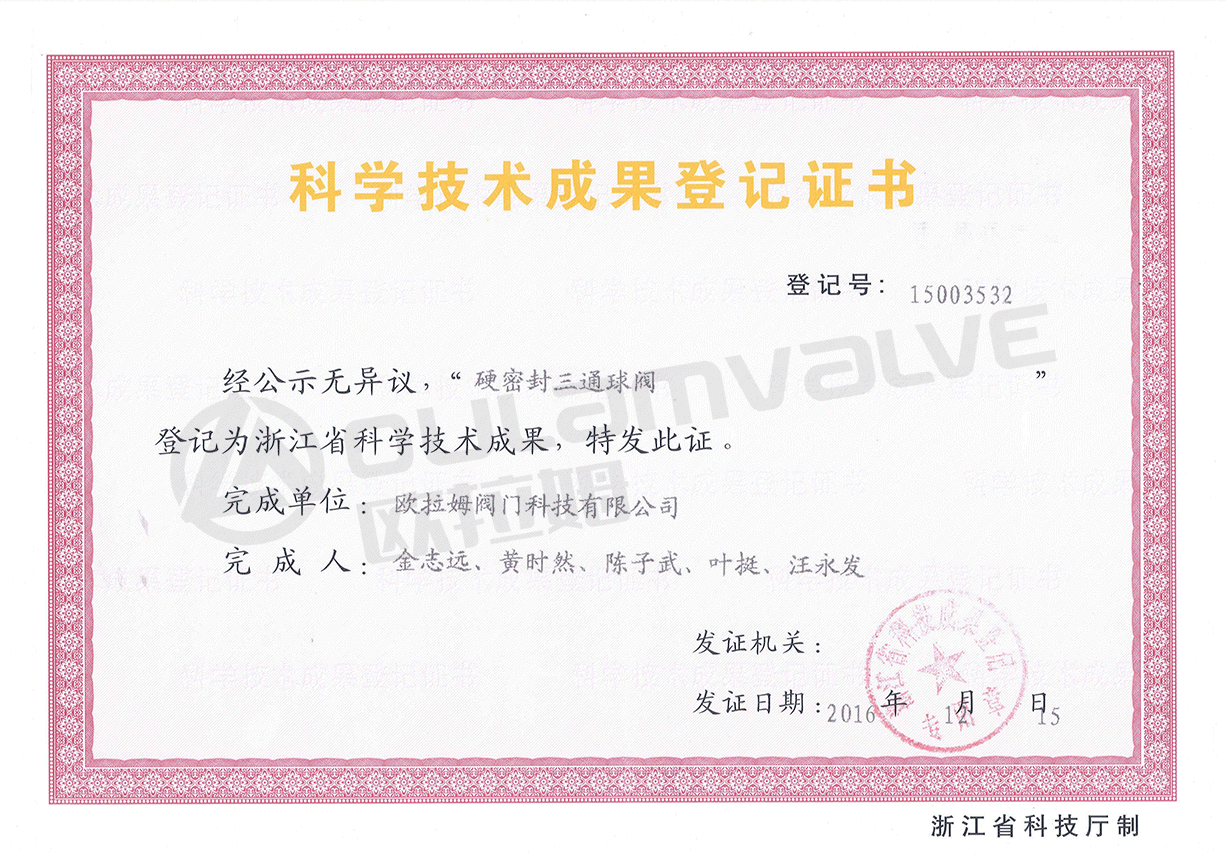 浙江省科學技術成果科學技術成果:硬密封三通球閥