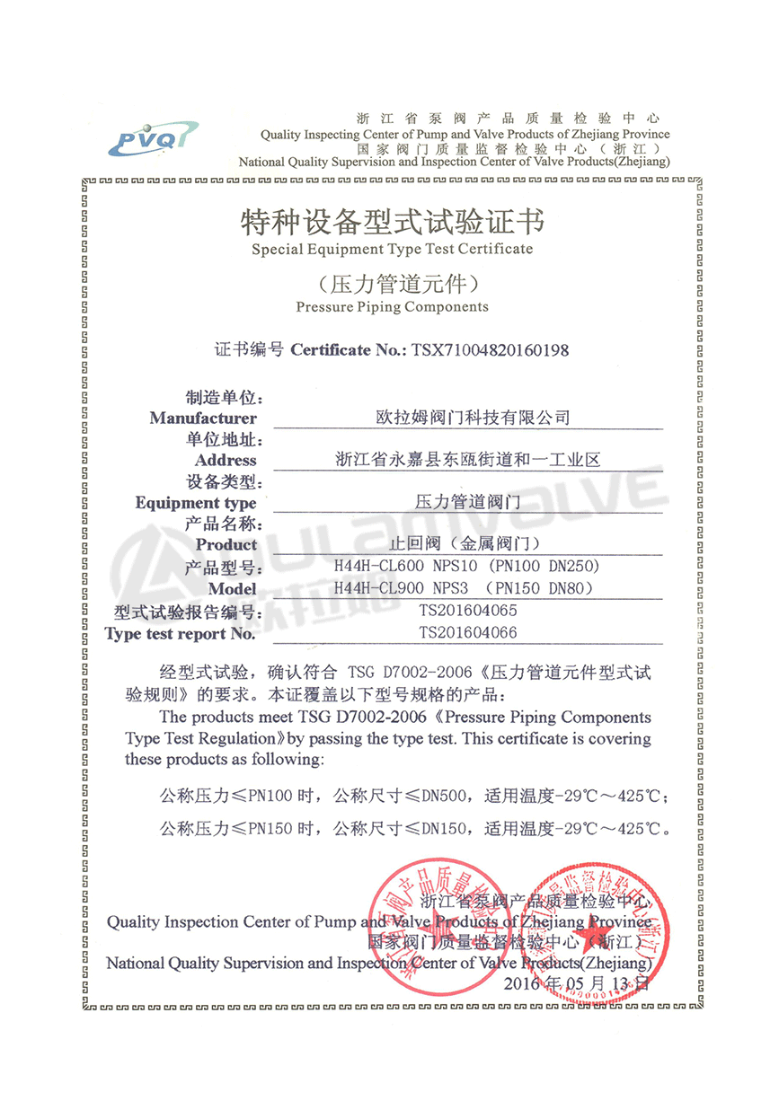止回閥特種設(shè)備型式試驗(yàn)證書