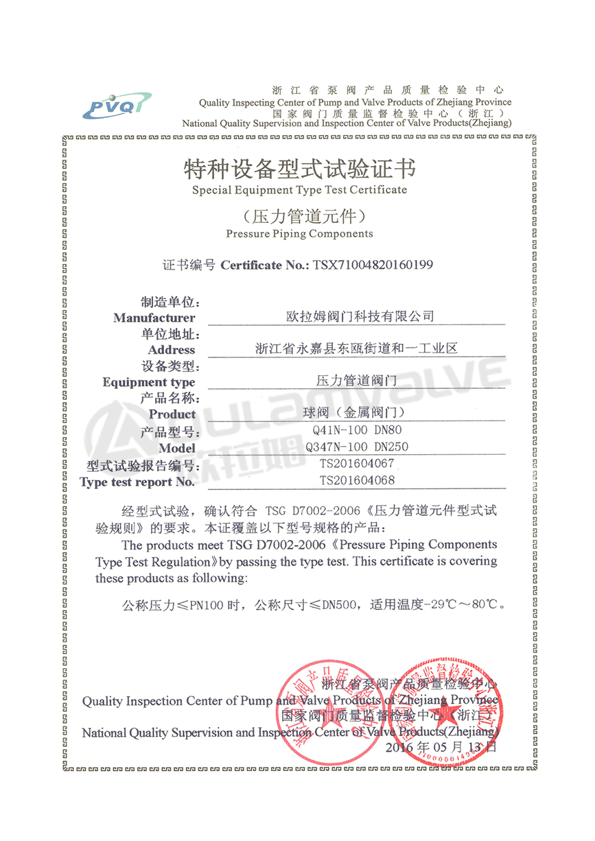止回閥特種設(shè)備型式試驗(yàn)證書