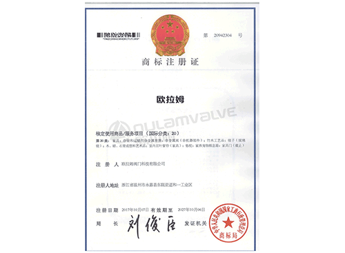 “歐拉姆”商標注冊證
