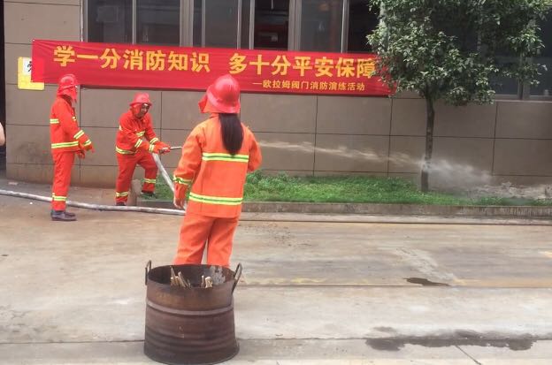 為了提高員工的安全意識,增強員工的防范意識和自救能力,5月27日下午歐拉姆閥門對各車間、辦公室全體員工進行了消防演練活動,使公司員工熟悉如何使用滅火器、消防水帶、消防水槍,掌握對突發火災的應變。
