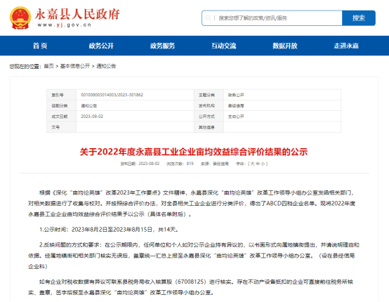 不以規(guī)模定標(biāo)準(zhǔn),而以“畝均論英雄”。近日,根據(jù)《深化“畝均論英雄”改革2023年工作要點(diǎn)》文件精神,永嘉縣深化“畝均論英雄”改革工作領(lǐng)導(dǎo)小組辦公室發(fā)函相關(guān)部門,對(duì)相關(guān)數(shù)據(jù)進(jìn)行了收集與校對(duì)。并按照綜合評(píng)價(jià)辦法,對(duì)全縣相關(guān)工業(yè)企業(yè)進(jìn)行分類評(píng)價(jià)。經(jīng)評(píng)定,歐拉姆被評(píng)定為2022年度永嘉縣規(guī)上工業(yè)企業(yè)畝均效益A類企業(yè)。