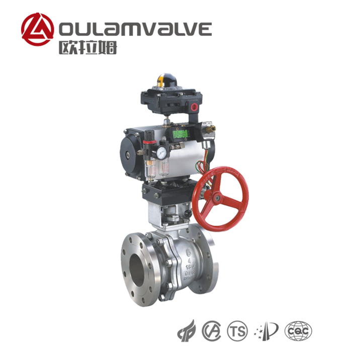 氣動球閥的球是固定的,受壓后不動。氣動球閥都裝有浮動閥座,浮動閥座會在介質的壓力下移動,使密封圈緊緊壓在球體上,保證密封。通常在球的上下軸上安裝軸承,操作扭矩小,適用于高壓大口徑氣動球閥。為了降低氣動球閥的工作扭矩,增加密封的可靠性,近年來出現了油封氣動球閥,這種氣動球閥不僅在密封面之間注入特殊的潤滑油形成油膜,而且增強了密封性能,降低了工作扭矩,更適用于高壓大口徑氣動球閥。