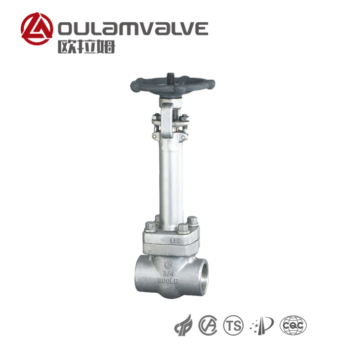 低溫閘閥的啟閉部件是閘閥,閘閥的運動方向垂直于流體方向。閘閥只能完全開啟和關閉,但不能調節或節流。澆口有兩個密封面。最常用的閘閥的兩個密封面形成楔形。楔角隨閥門參數而變化,一般為50°,介質溫度不高時為2° 52′。楔式閘閥的閘板可以做成整體,稱為剛性閘板;也可以做成能產生輕微變形的澆口,以提高其工藝性,彌補加工時密封面角度的偏差。這種閘門稱為彈性閘門。